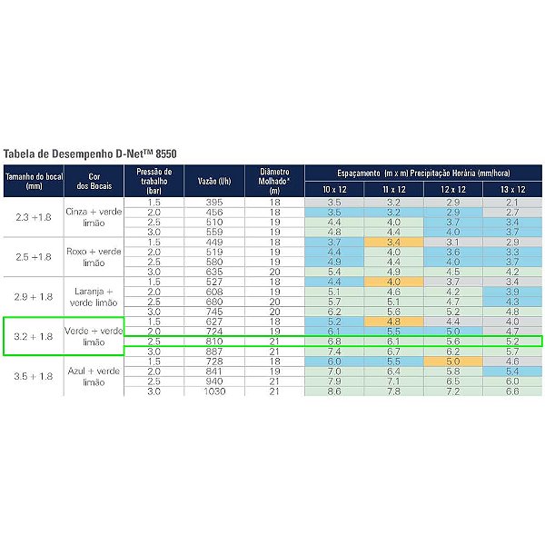 ASPERSOR D-NET 8550 VERDE + VERDE LIMÃO 3.2 + 1.8 810 L/H - 50 UNIDADES